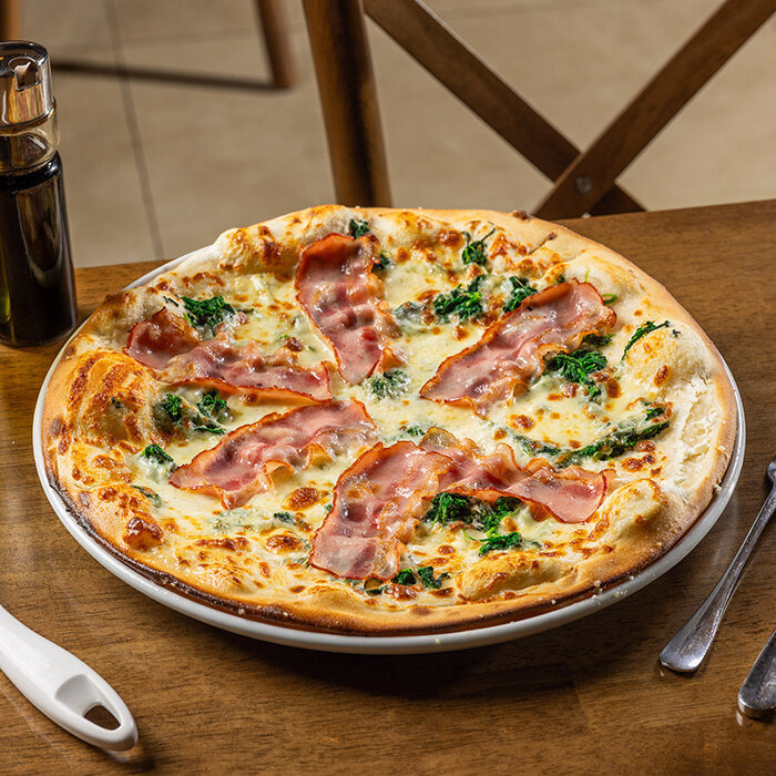 smotanová salsa,mozzarella syr, slanina, špenát, cesnak 1,7,12