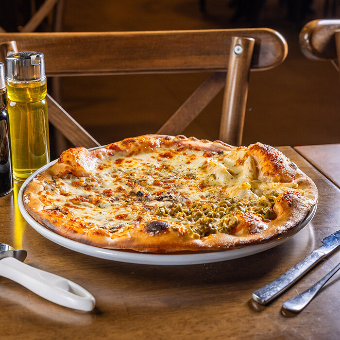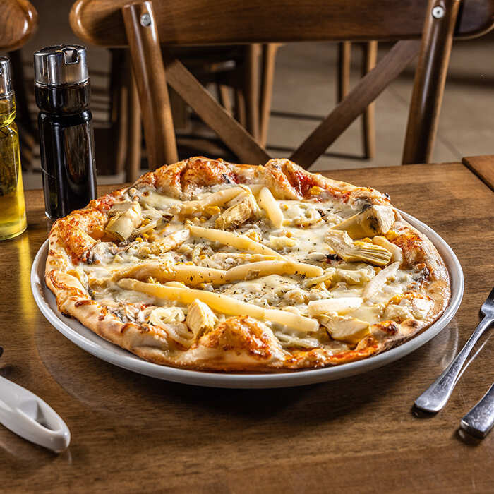 paradajková salsa, mozzarella syr, šunka, mäkký syr, artičoky, olivy, kukurica 1,7,12