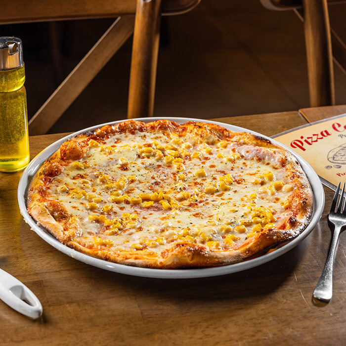 paradajková salsa, mozzarella syr, šunka, kukurica 1, 7, 12