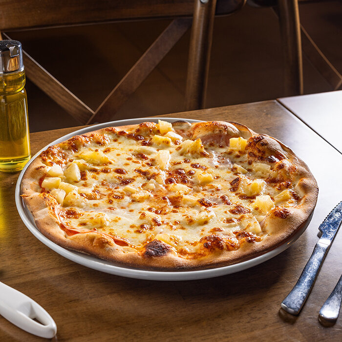 paradajková salsa, mozzarella syr, šunka,ananás 1, 7, 12