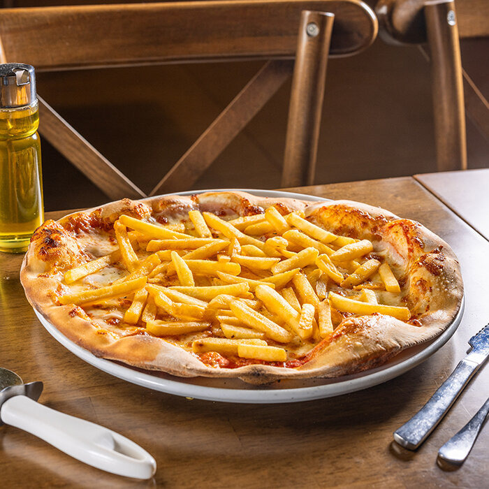 paradajková salsa, mozzarella syr, šunka, hranolky 1, 7, 12
