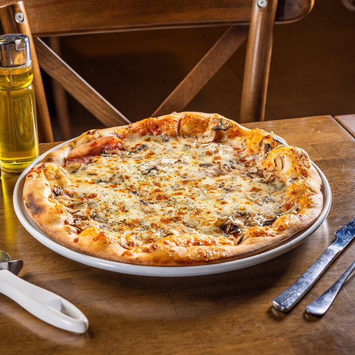 paradajková salsa, mozzarella syr, šunka, šampiňóny 1, 7, 12