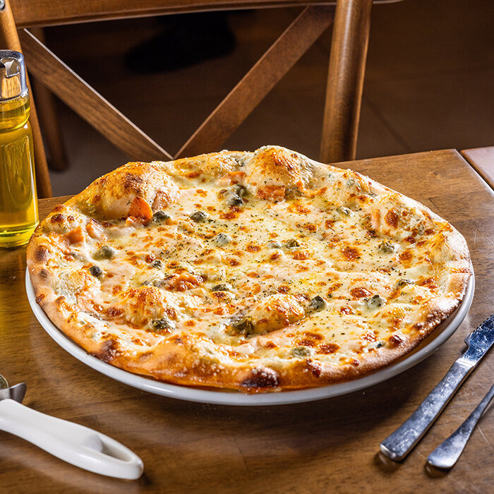 paradajková salsa, prosciutto crudo, gorgonzola, mozzarella syr, cesnak 1, 7, 12