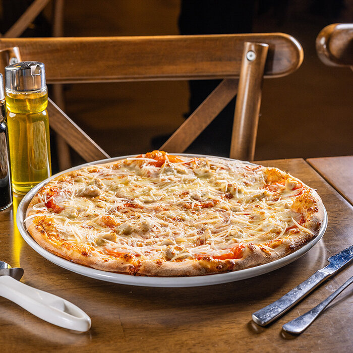paradajková salsa, mozzarella syr, kuracie mäso, paradajky, parmezán 1,7,12